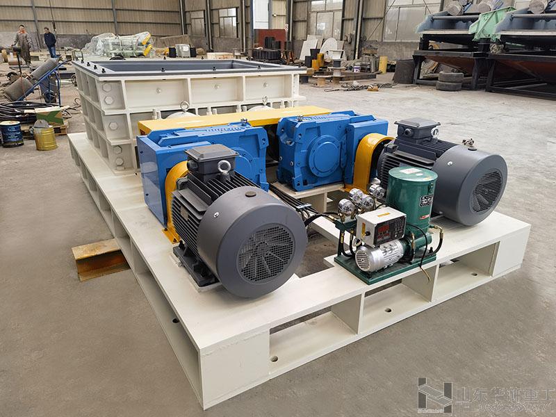 雙齒輥破碎機是利用兩個耐磨破碎齒輥,相對旋轉產生的高擠壓力來破碎物料,物料進入兩齒輥間隙(V型破碎腔)以后,受到兩齒輥相對旋轉的擠壓力和剪切力作用,在擠軋、剪切和嚙磨下,將物料破碎成需要的粒度然后再由排料口排出。